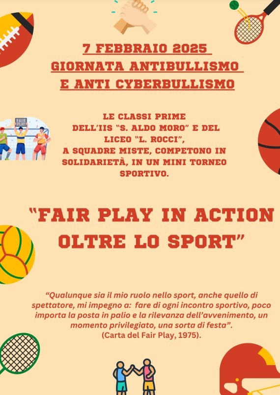 HomeFair Play in Action oltre lo sport – 7 febbraio 2025 Giornata contro il bullismo e cyberbullismo Fair Play in Action oltre lo sport – 7 febbraio 2025 Giornata contro il bullismo e cyberbullismo Tipologia Data: Febbraio 5, 2025 Carta dello studente a.s.2024-2025 Il coraggio di sognare – contrastare concretamente la dispersione scolastica – 4 marzo 2025 dalle ore 17:00