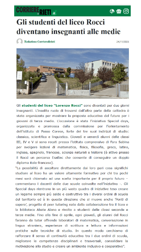 HomeGli special days al liceo Rocci Gli special days al liceo Rocci Tipologia Data: Novembre 24, 2025 Avviso Pubblico Integrativo Interno/Esterno Per La Selezione Di Esperti Il Rocci alla Manifestazione a Roma “Corri Libera”